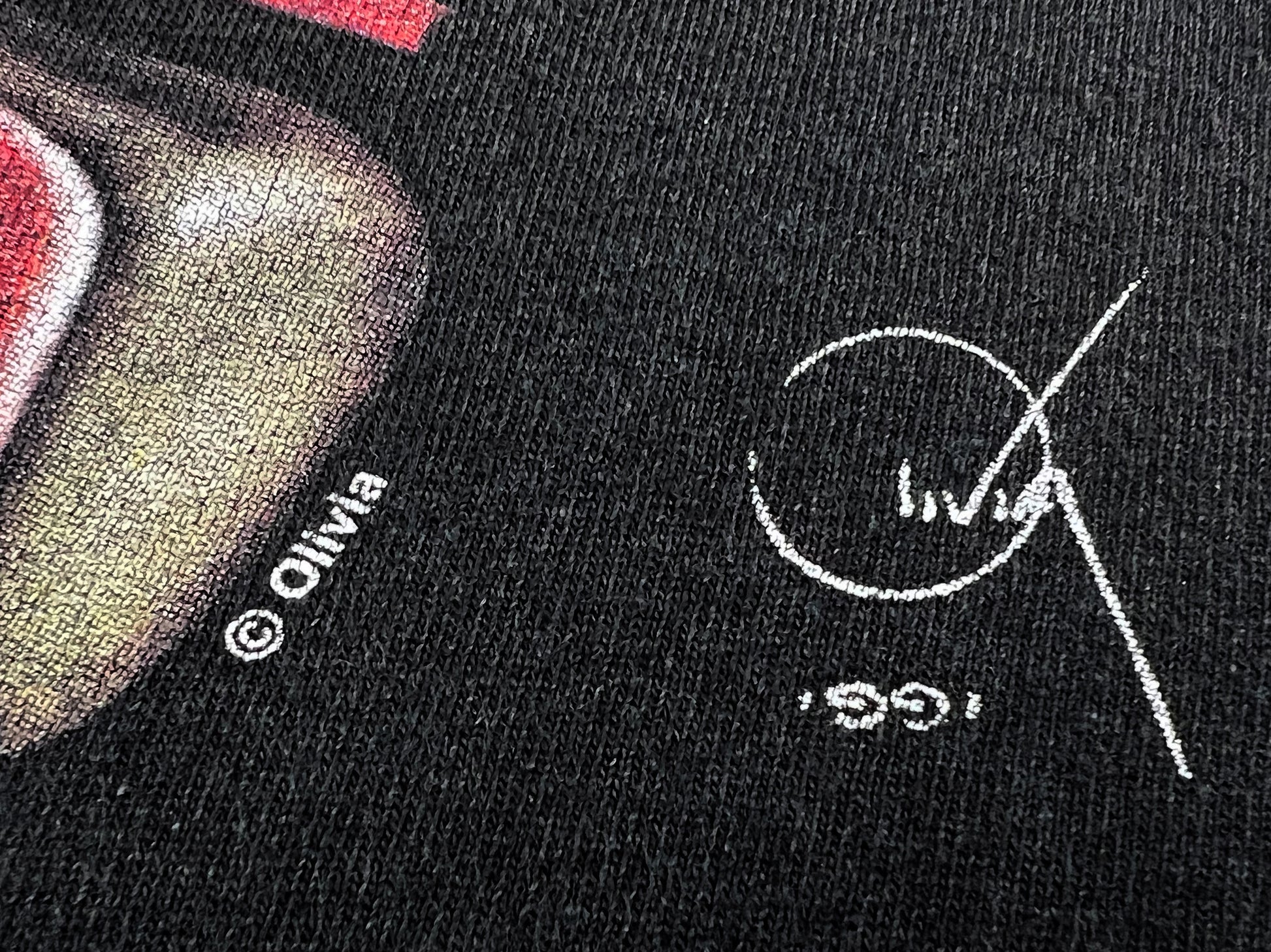 Comments: T-Shirt is in great vintage condition. Some signs of wear and fade. Graphic on the front, no graphic on the back. There is a hole that has been stitched in the upper left shoulder.