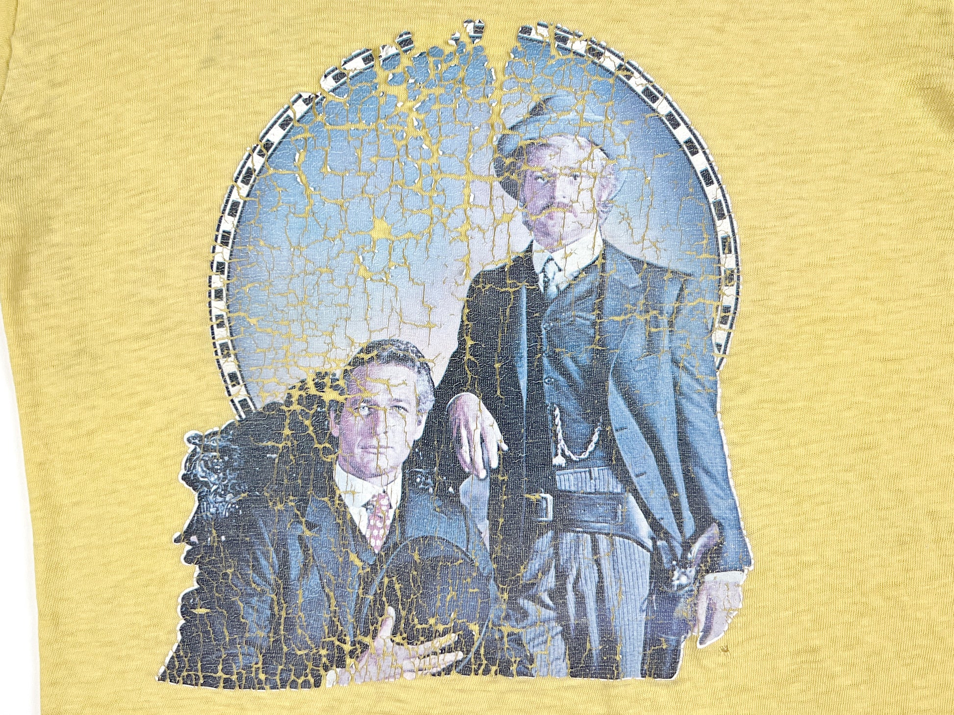 Comments: T-Shirt is in fair vintage condition. Some signs of wear and cracking in the iron on print. Graphic on the front, no graphic on the back. Single stitch hems. T-Shirt is thin & worn and soft.