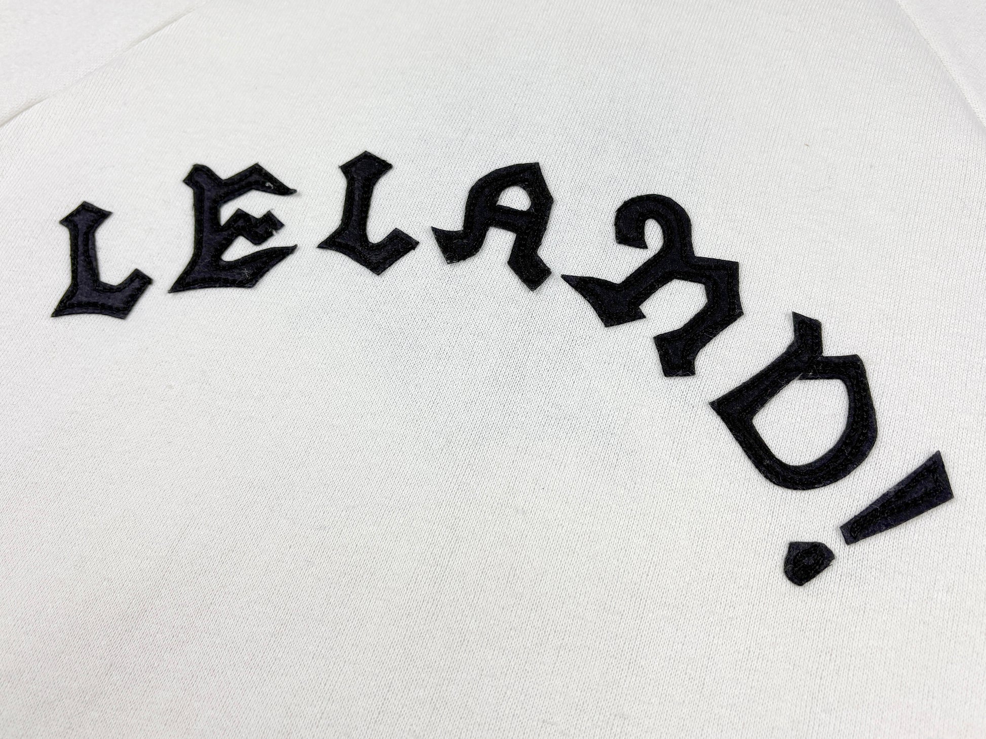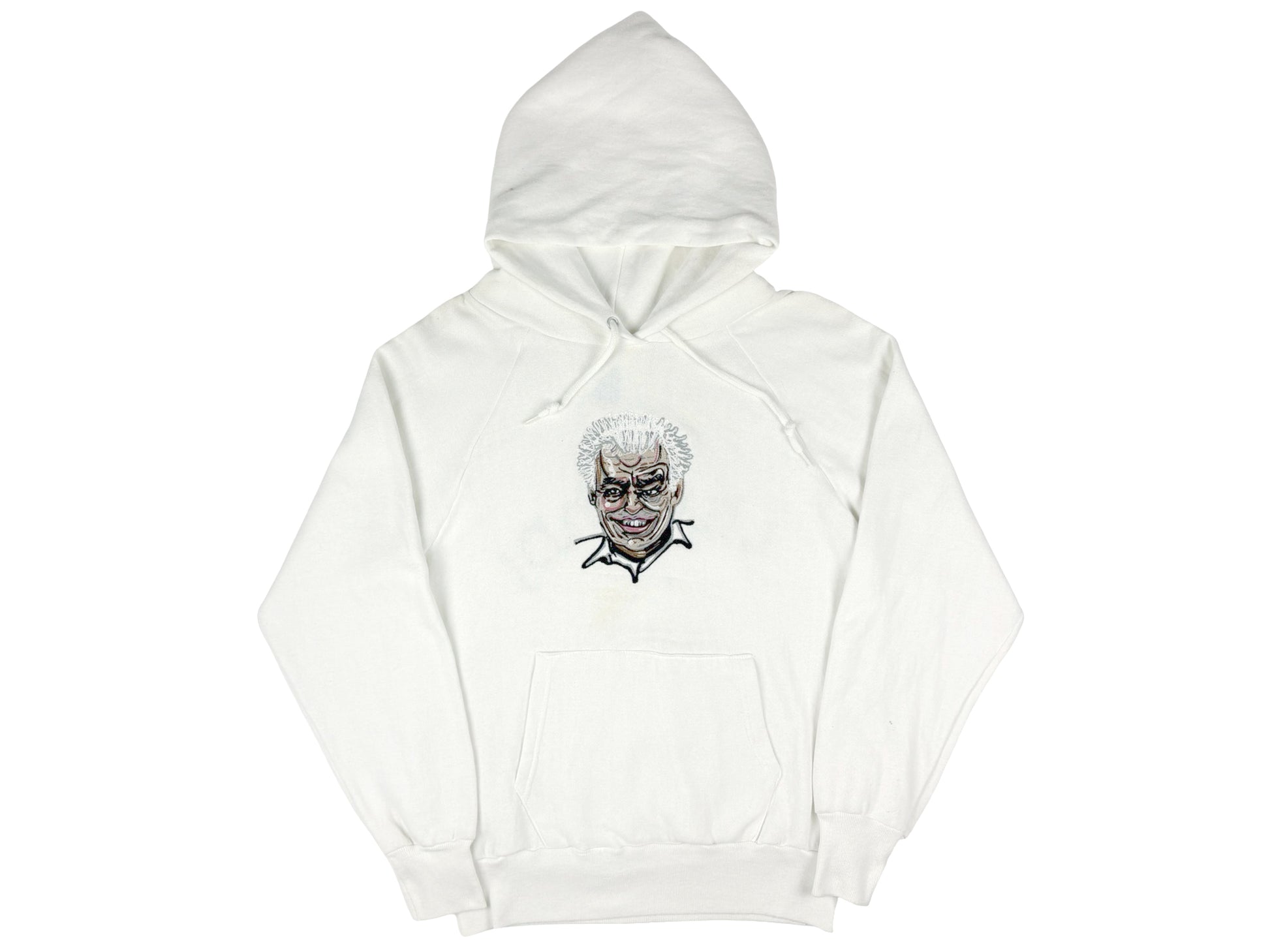 Comments: Chain stitch embroidery on the front and stitched felt letters on the back.Some signs of wear to the hoodie. Graphic on the front and back.