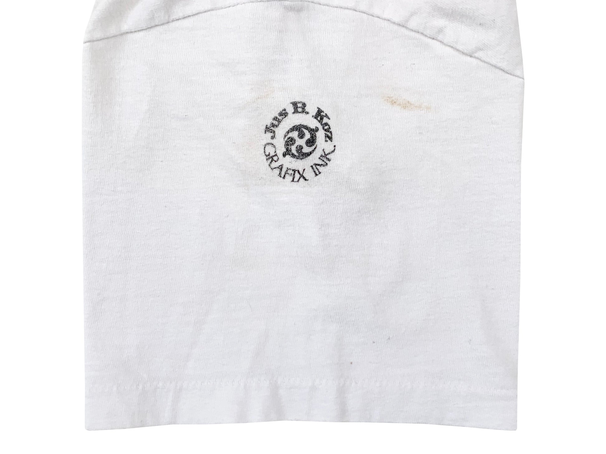 Comments: T-Shirt is in great vintage condition. Some signs of wear. Graphic on the front and left sleeve, no graphic on the back. Single stitch hems. Graphic on the front looks like it was a digital computer print out iron on.